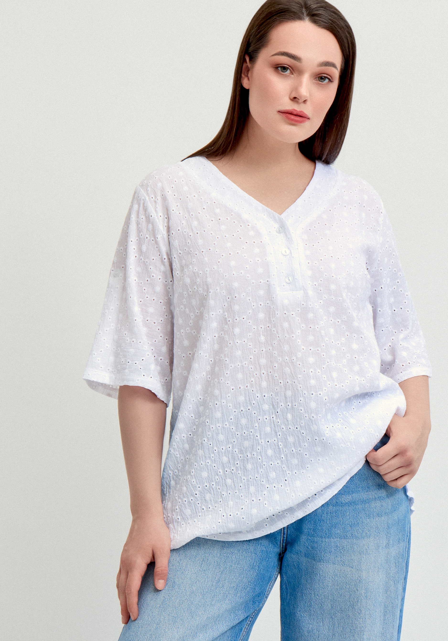 Хлопковая блуза с V-вырезом и коротким рукавом Gerry Weber