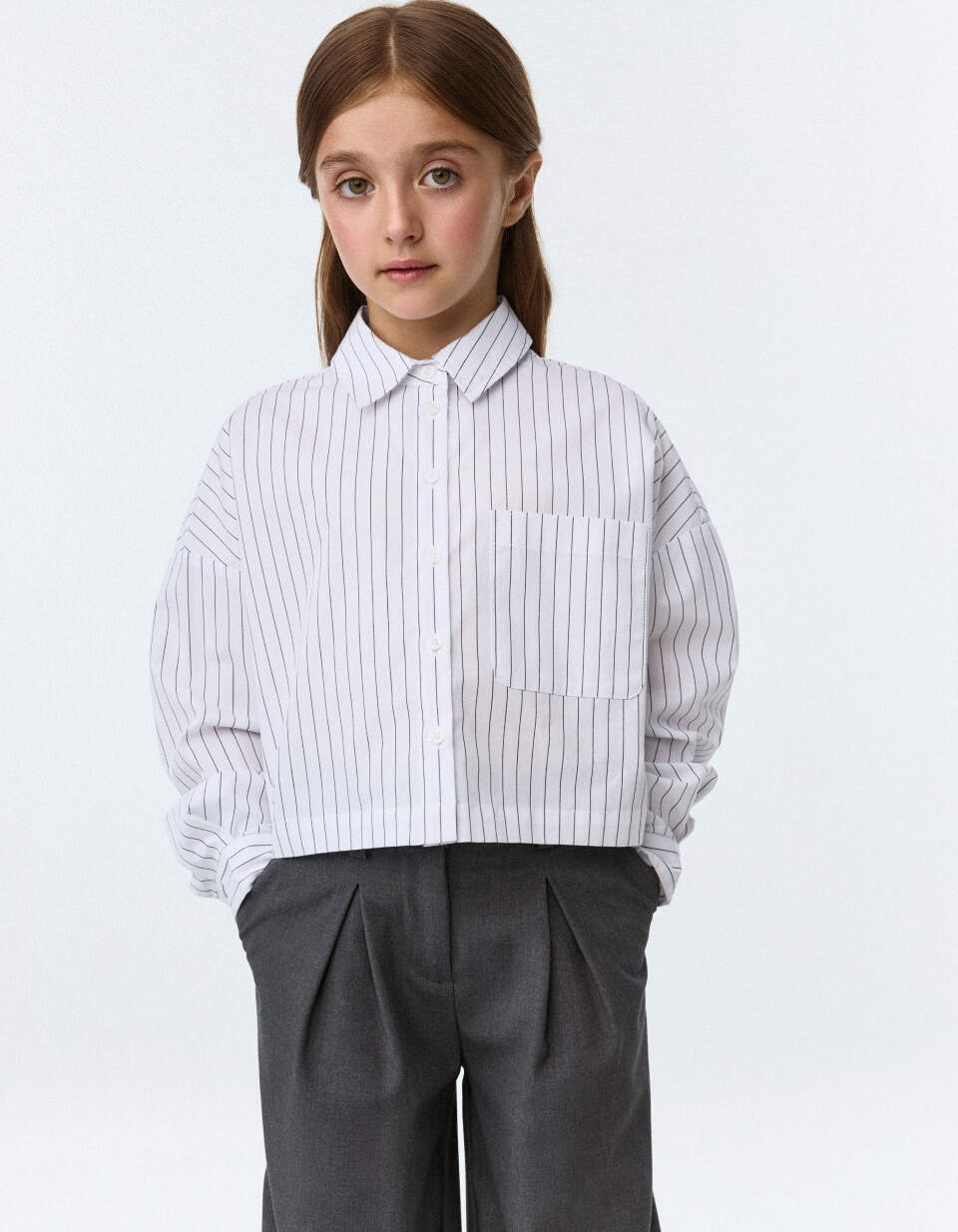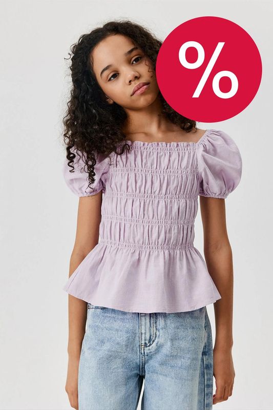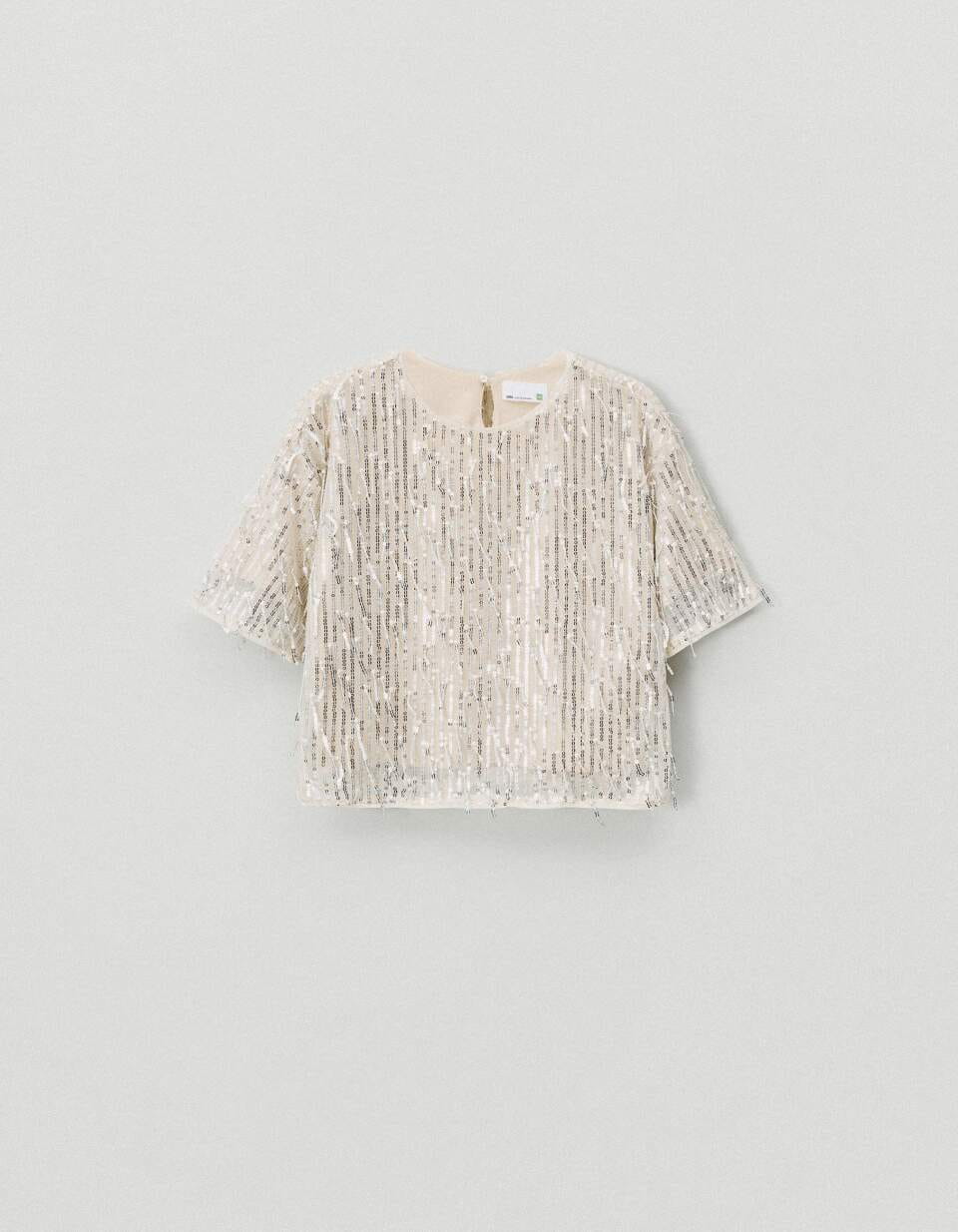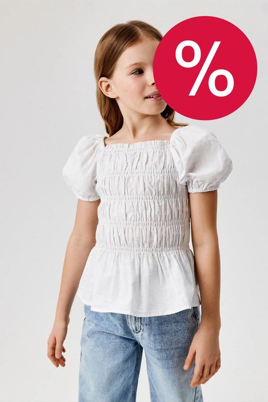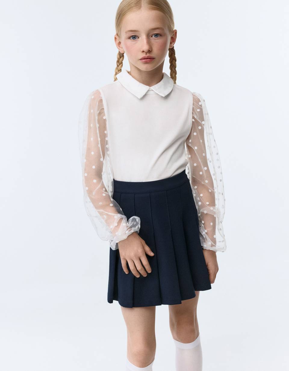 Блузка Lanson Kids с кружевным воротником и короткими рукавами молочная
