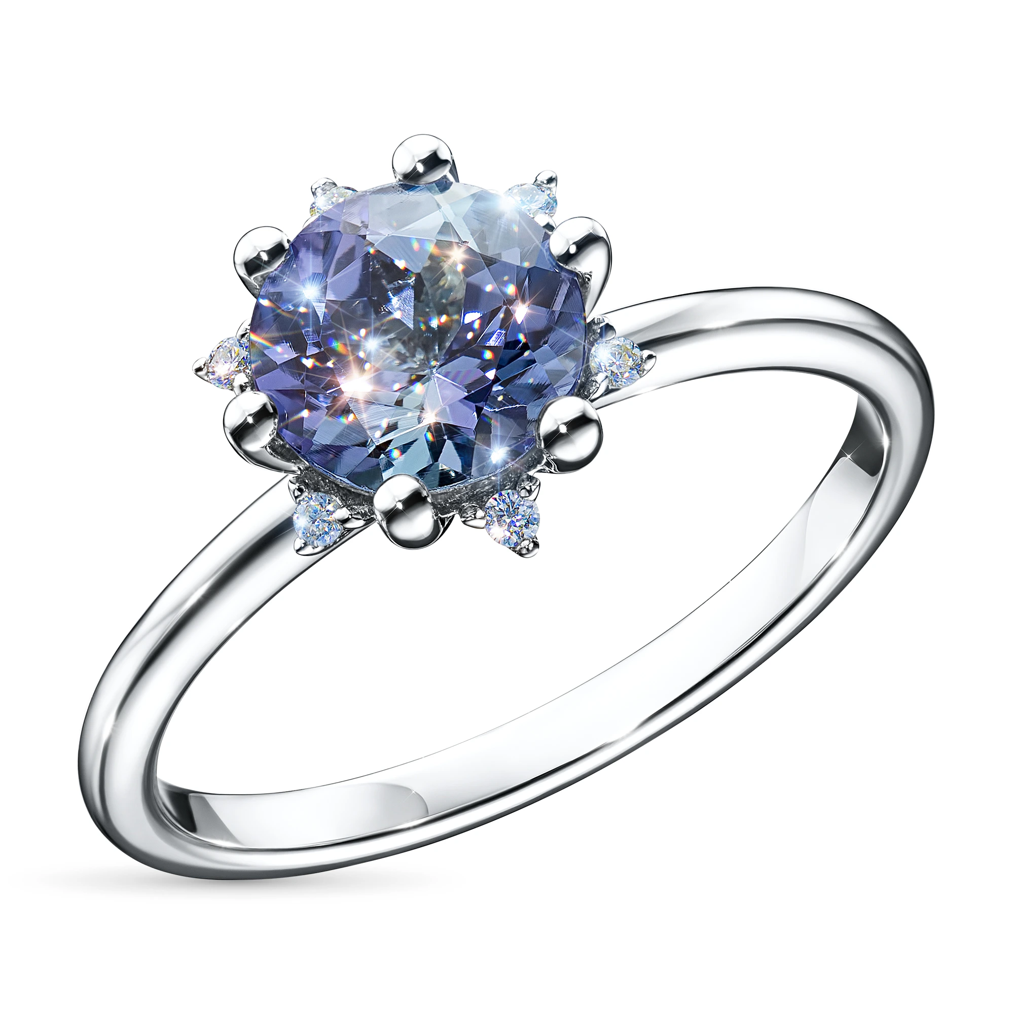 Кольцо ЭПЛ Даймонд с танзанитом и бриллиантами, из белого золота