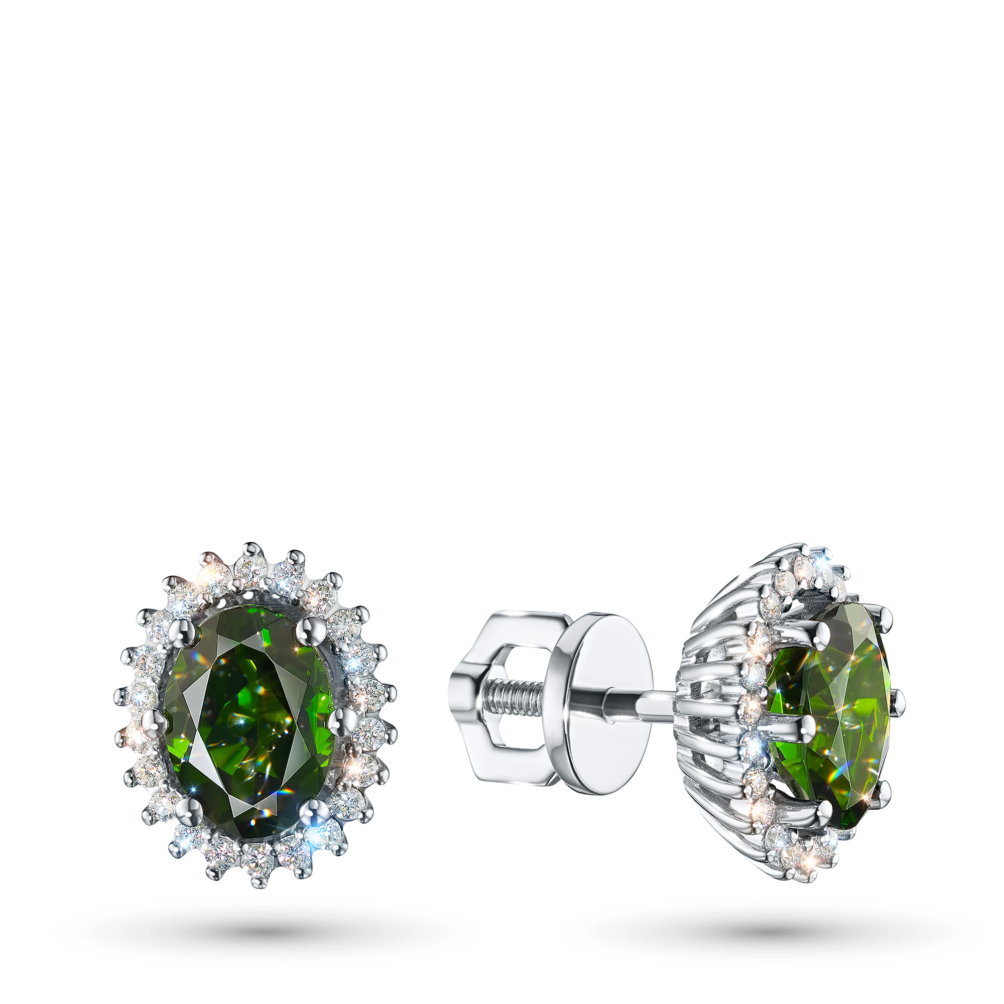Пусеты ЭПЛ с бриллиантами 3 ct из белого золота с хромдиопсидами