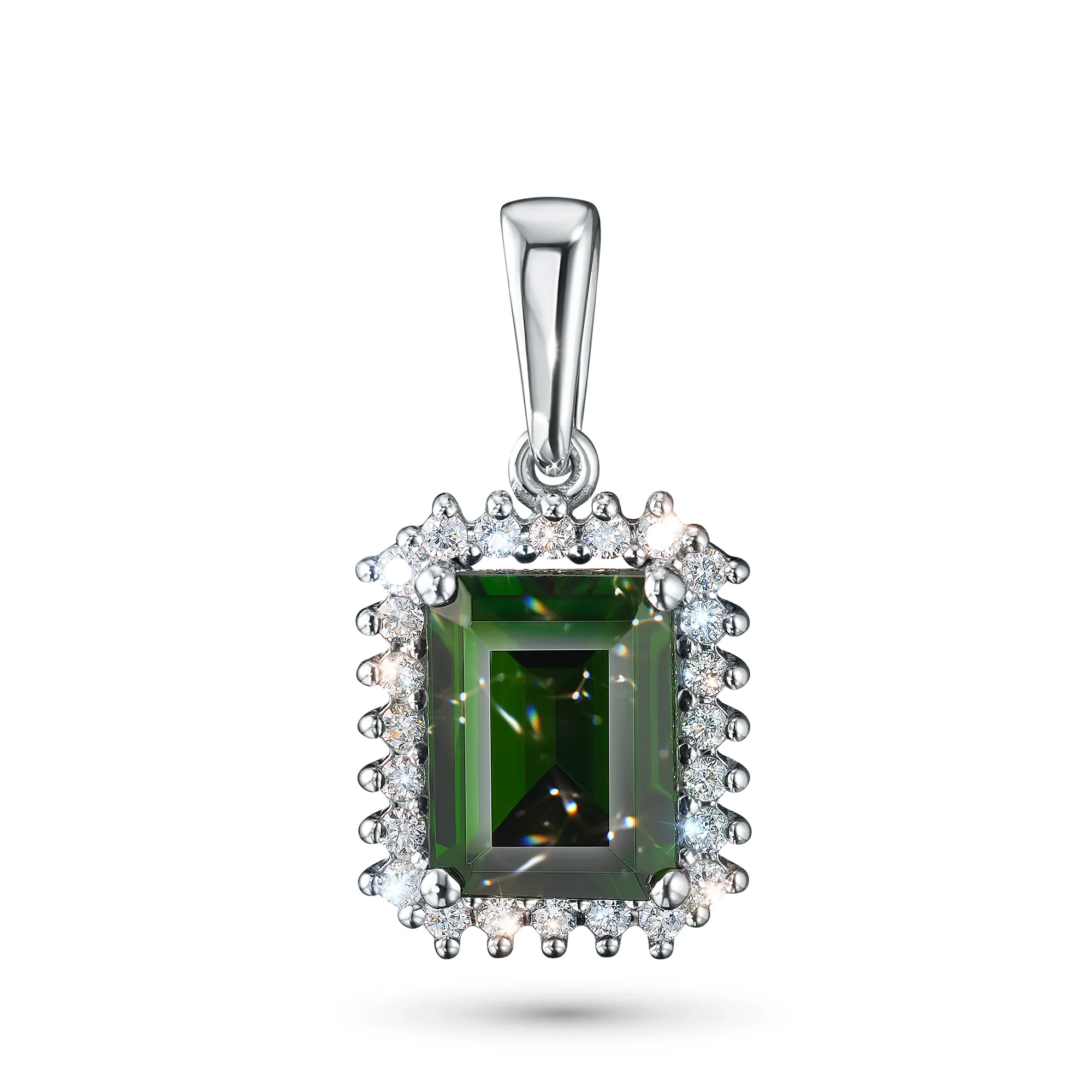 Подвеска ЭПЛ с бриллиантами 1,7 ct из белого золота с хромдиопсидом