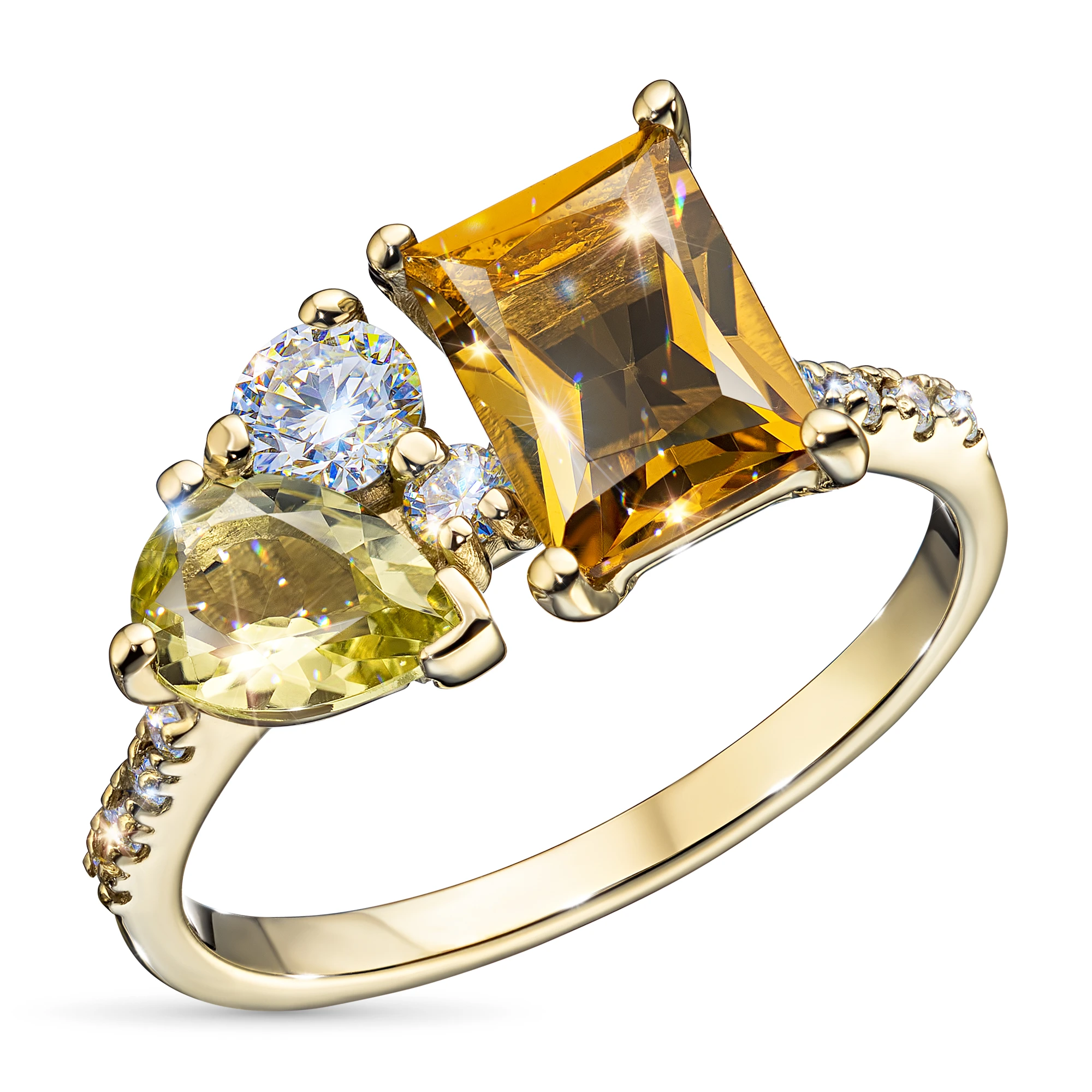 Кольцо ЭПЛ с бриллиантами 2,2 ct из желтого золота с и цитринами