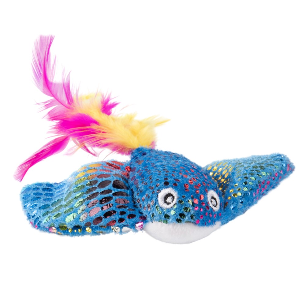 Игрушка для кошек Mr.Kranch Скат плюшевая с кошачьей мятой и перышками 16см голубая
