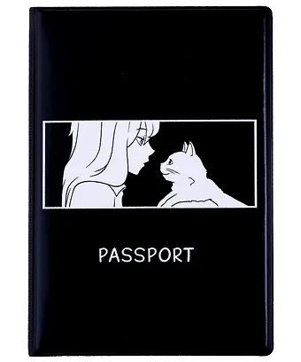 Обложка для паспорта Аниме ч/б Девушка с котиком (ОП2024-417)