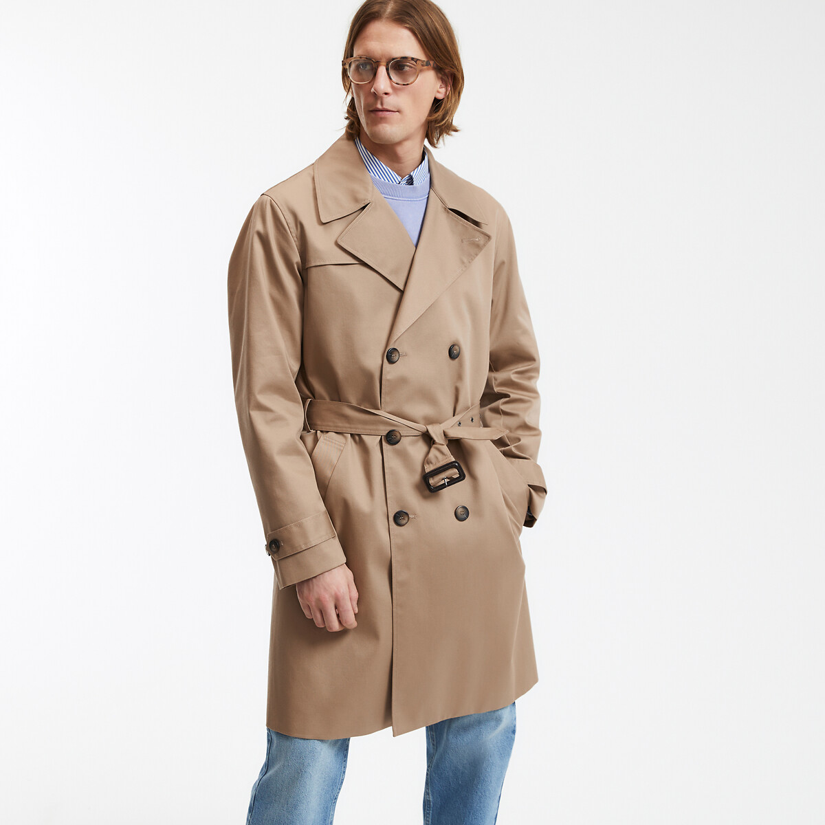 Тренчкот средней длины с рубашечным воротником демисезонная модель S бежевый