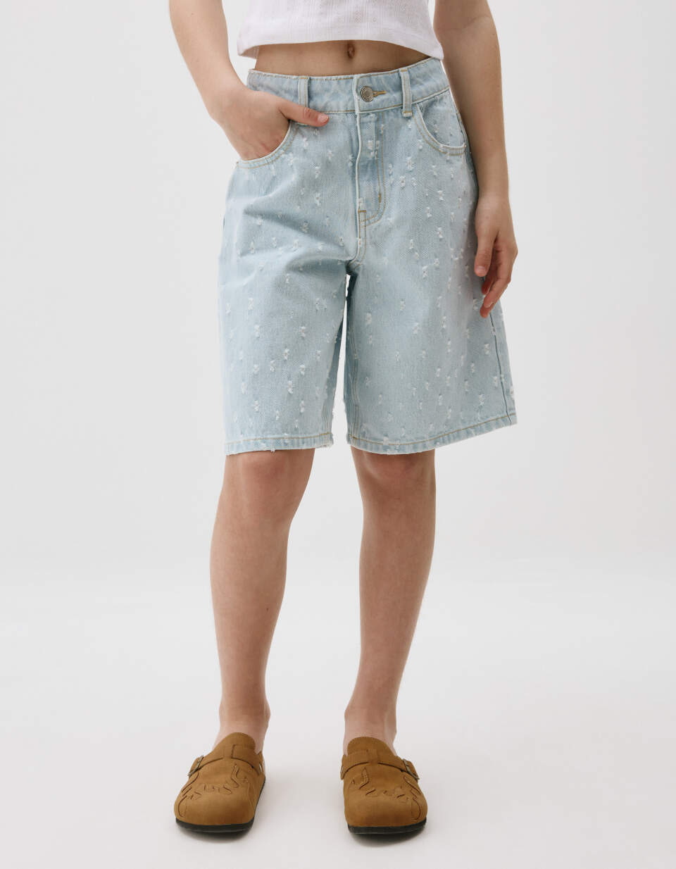 Джинсовые шорты-бермуды с потертостями для девочек