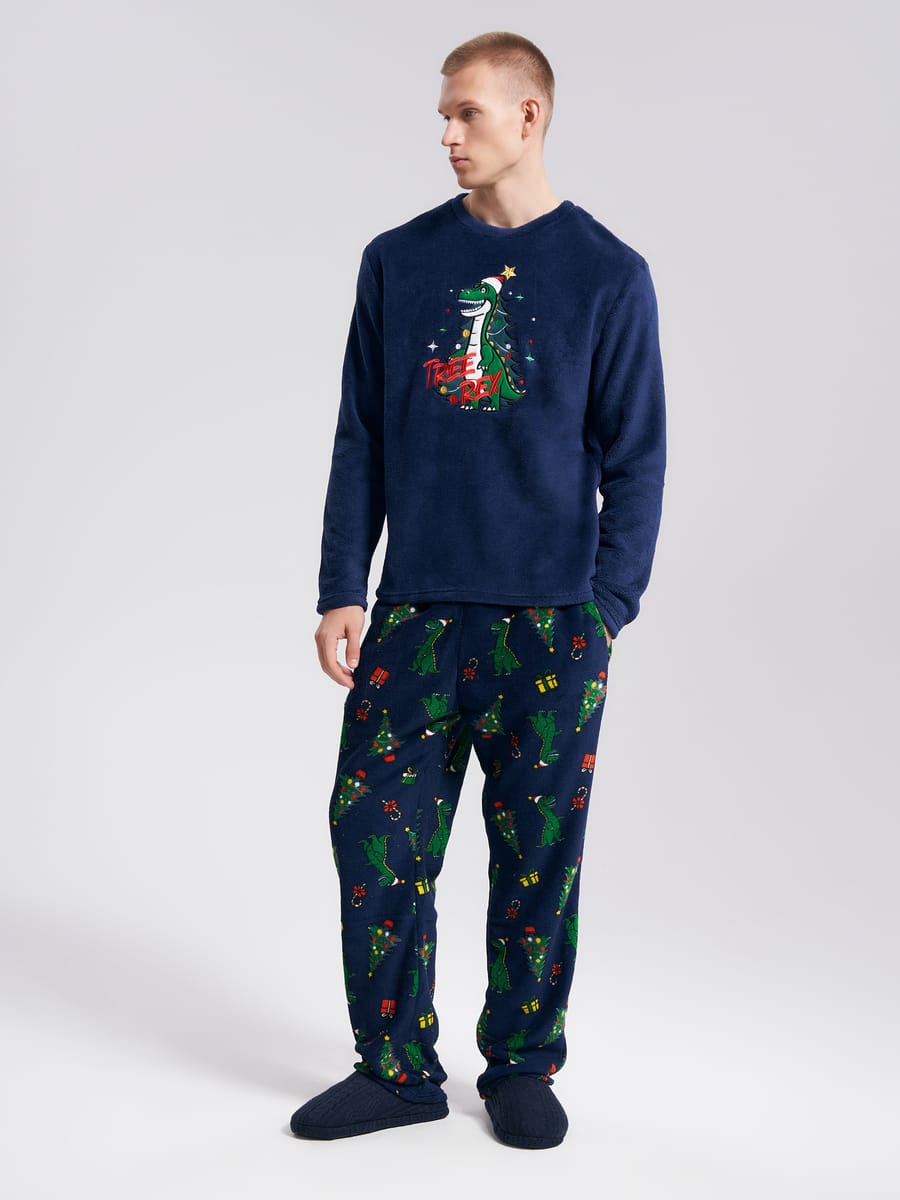 Новогодняя плюшевая пижама с вышивкой динозавра