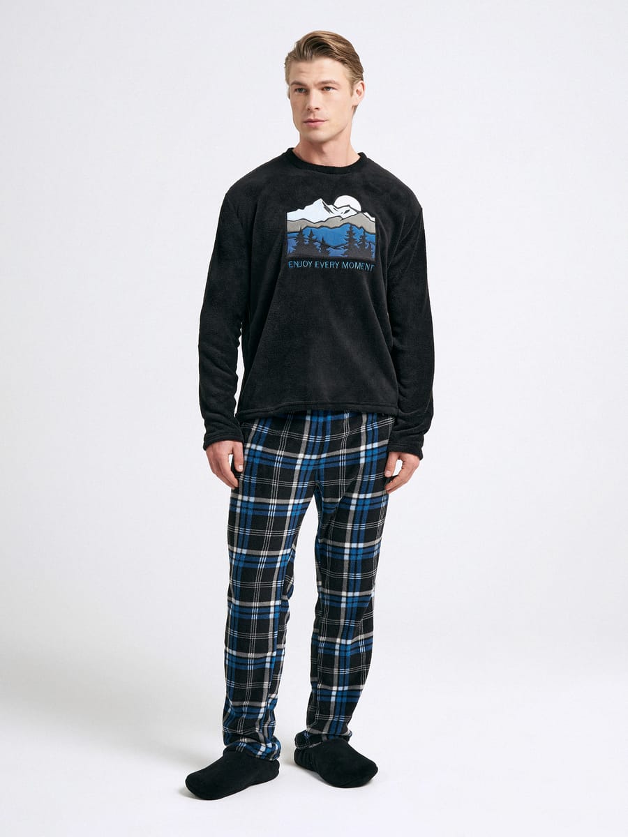 Плюшевая пижама с лонгсливом и брюками в клетку