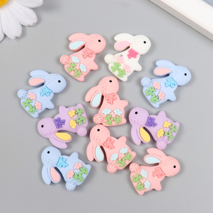 Декор для творчества пластик "Зайчик с бантиком в цветах" МИКС 2,9х2,4 см