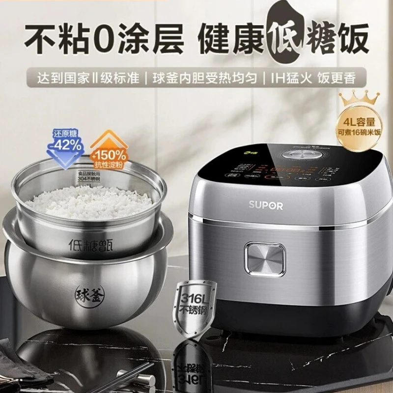 SUPOR Рисоварка с низким содержанием сахара, сепарация рисового супа, рисоварка на пару, чайник с шариками IH, электрическая плита с покрытием 316 л
