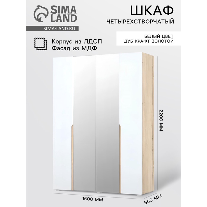 Шкаф четырехстворчатый «Виктория», 1600×560×2200 мм, цвет дуб крафт золотой/белый