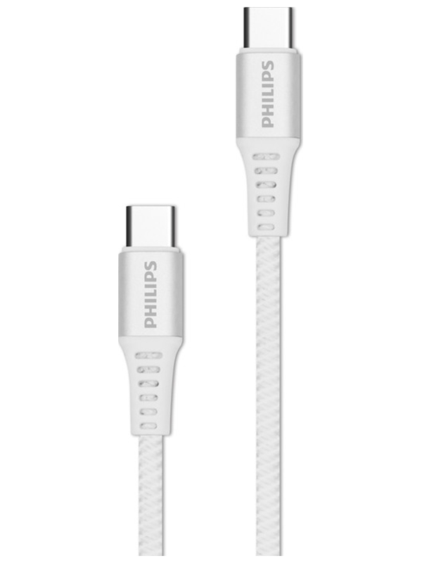 Кабель Philips USB C - USB C, 60W, 1.2 м, плетеный, белый (DLC8701W/74) Кабель Philips USB C - USB C, 60W, 1.2 м, плетеный, белый (DLC8701W/74)