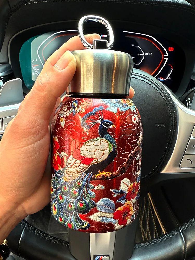 Cross Border New Chinese Style Thermos Cup Portable Outdoor Handle Pocket Car Cup Printed Design 201-300ml