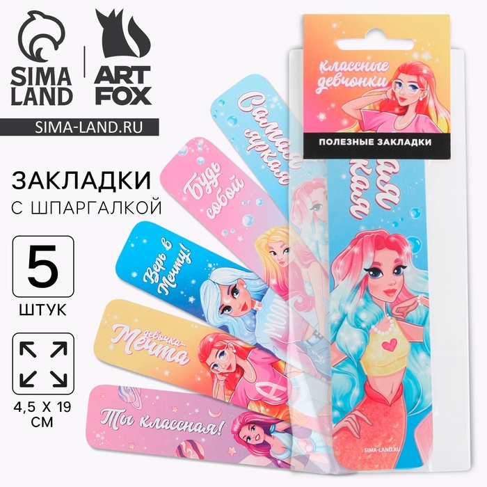 Закладки картонные, шпаргалки 5 шт «Девочки»