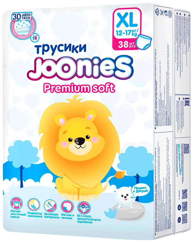 Подгузники-трусики Joonies Premium Soft размер XL (12-17 кг) 38 шт. Подгузники-трусики Joonies Premium Soft размер XL (12-17 кг) 38 шт.