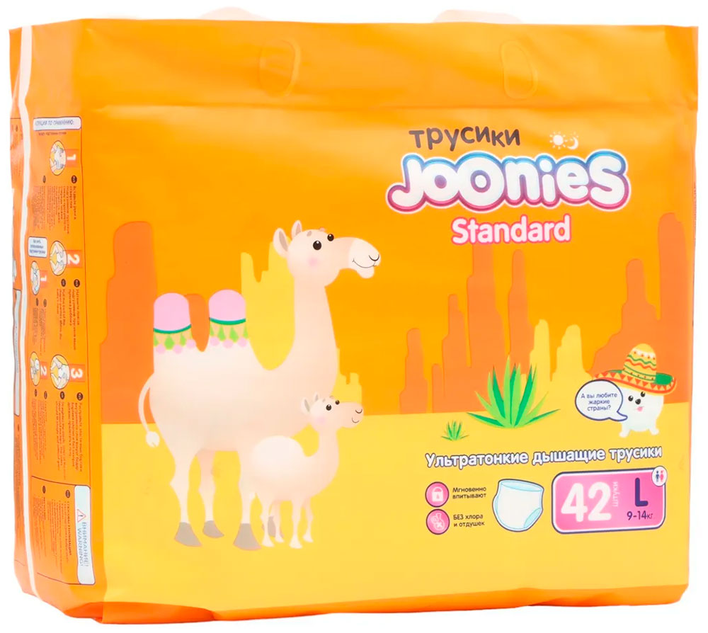 Подгузники-трусики Joonies Standard размер L (9-14 кг) 42 шт. Подгузники-трусики Joonies Standard размер L (9-14 кг) 42 шт.