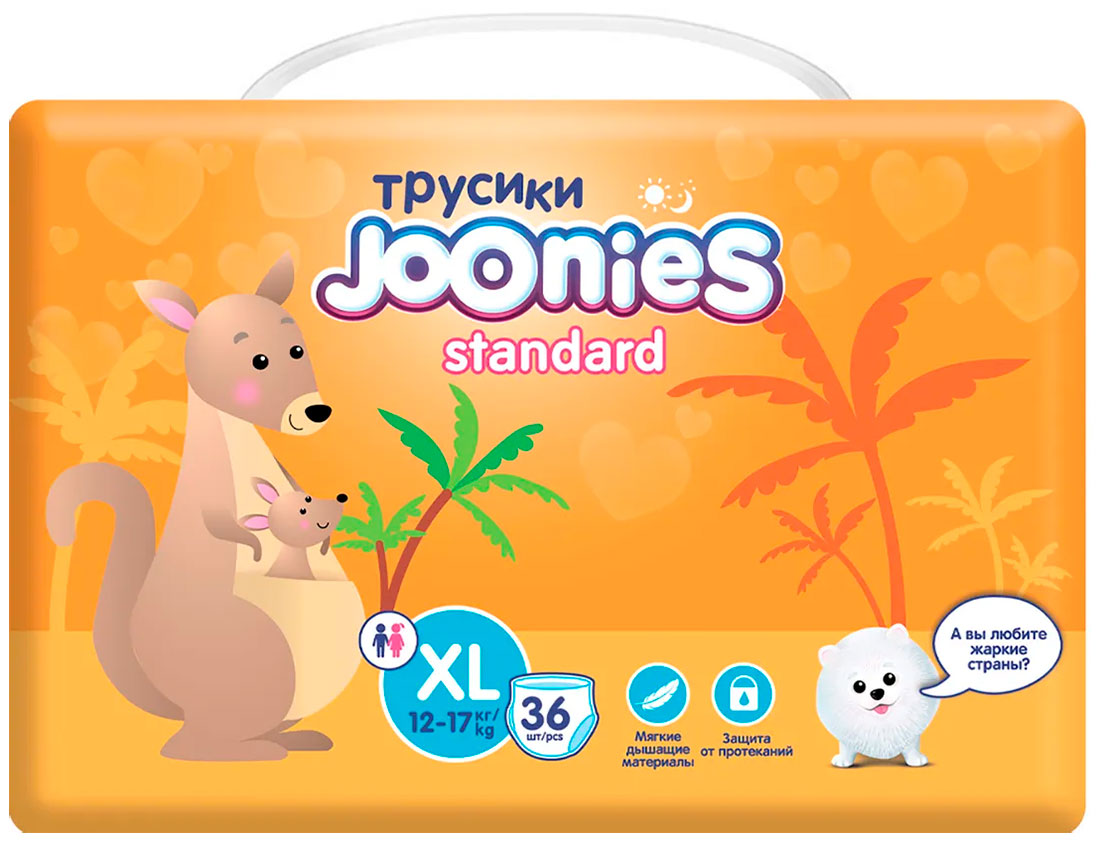 Подгузники-трусики Joonies Standard размер XL (12-17 кг) 36 шт. Подгузники-трусики Joonies Standard размер XL (12-17 кг) 36 шт.