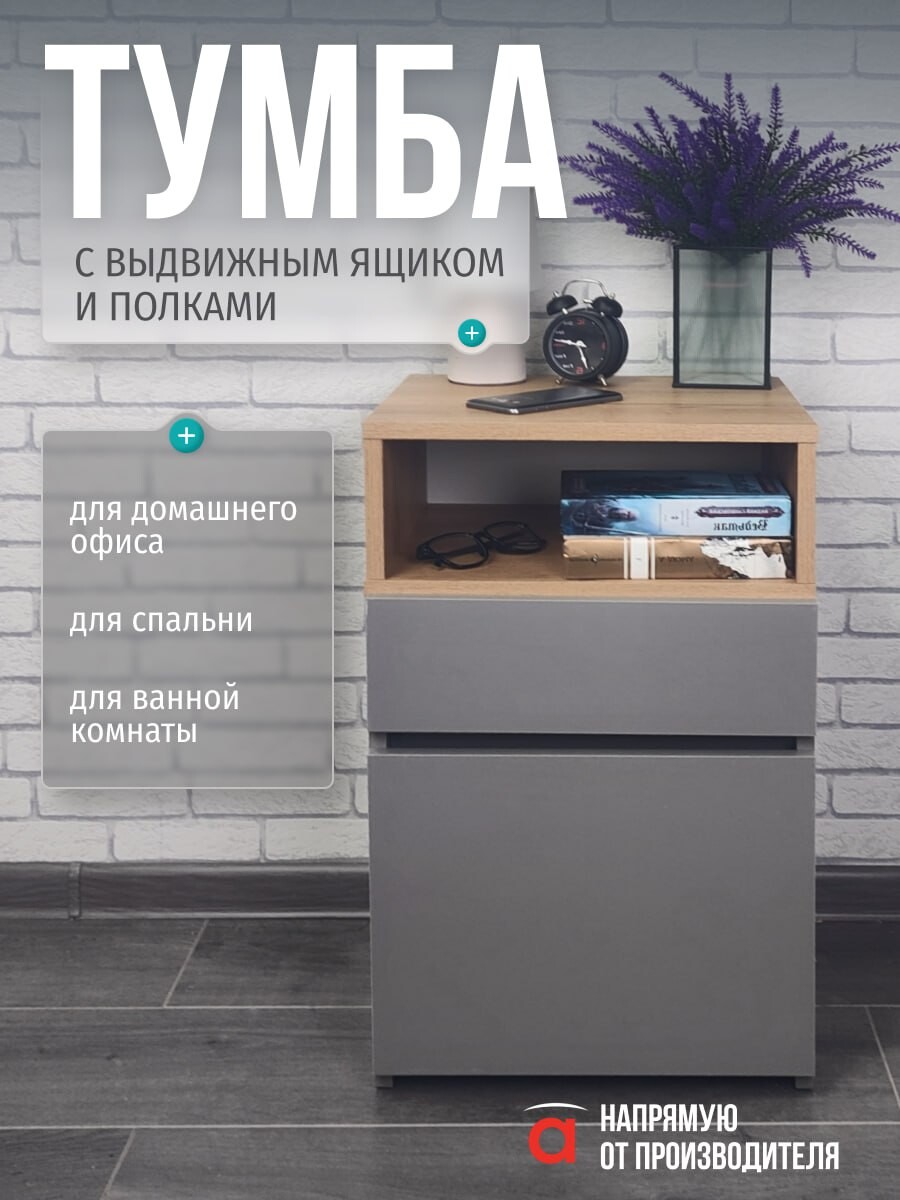 Тумба прикроватная nova, 500х410х452, белый/сонома
