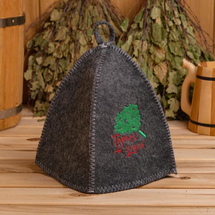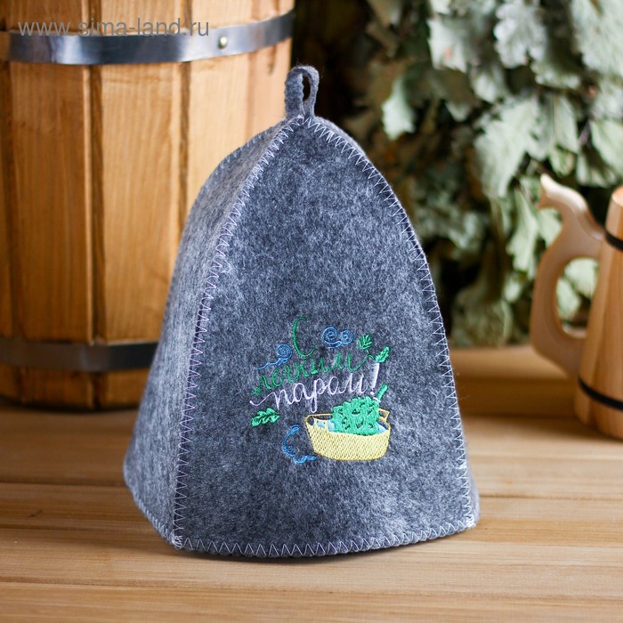 Шапка для бани с вышивкой из серого войлока " С легким Паром!"
