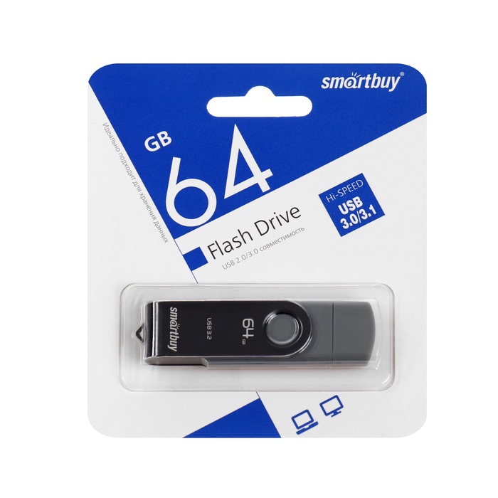 Флешка SmartBuy 064GB Twist Dual, 64 Гб, USB3.0, чт до 90 Мб/с, зап до 20 Мб/с, черная