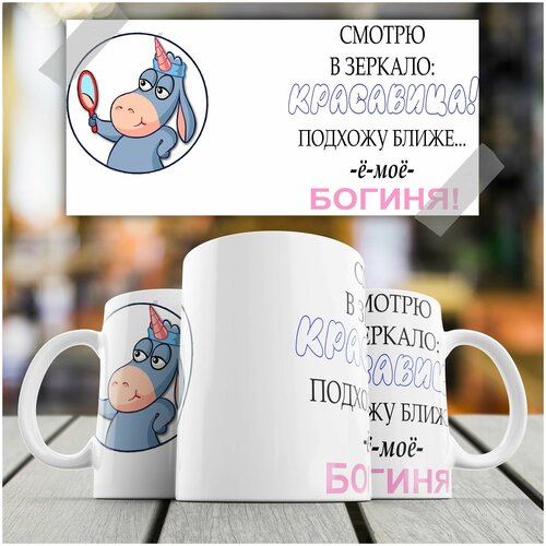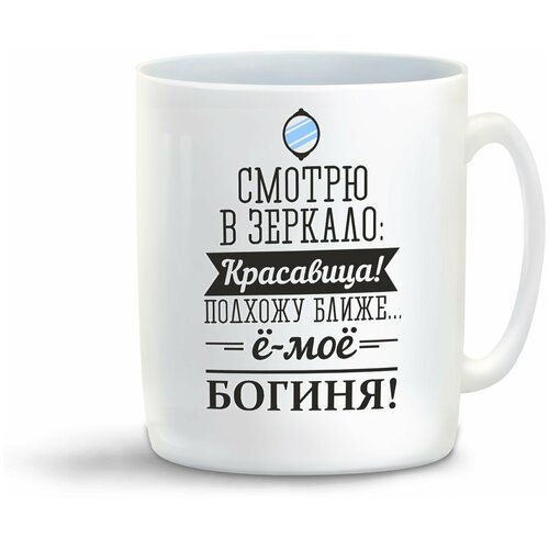 Кружка белая CoolPodarok "Смотрю в зеркало Красавица, подхожу ближе, ё-мое. богиня"