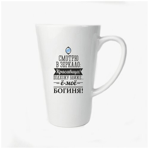 Большая конусная кружка CoolPodarok Смотрю в зеркало Красавица подхожу ближе ё мое богиня