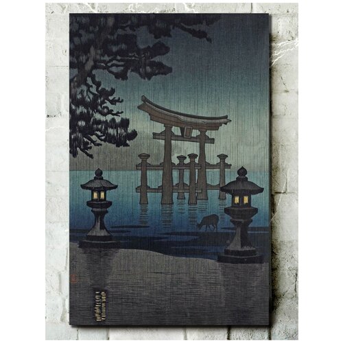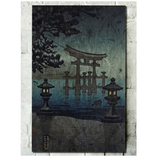 Картина интерьерная на дереве японская живопись (укиэ - ё, пагода) - 898