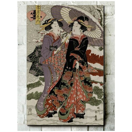 Картина интерьерная на дереве японская живопись (укиэ - ё, гейши) - 897