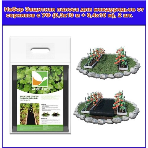 Набор Защитная полоса для междурядьев от сорняков с УФ, 0,3х10 м + Защитная полоса для междурядьев от сорняков с УФ, 0,4х10 м