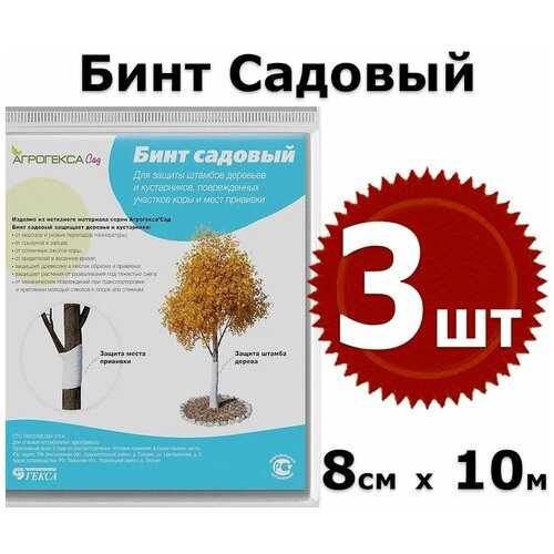 Агротекс Садовый бинт для деревьев 8 см х 10 м Агротекс с УФ-стабилизатором, белый 3 шт