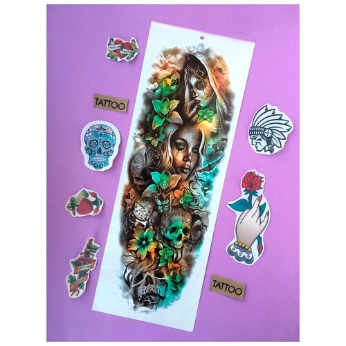 Тату рукав "Девушки и череп" (Цв: Разноцветный )