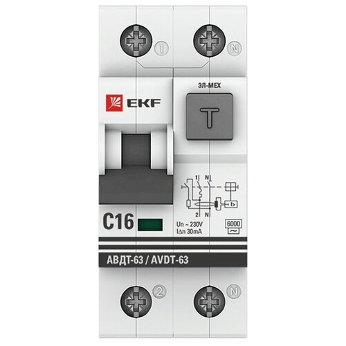 Автомат дифференциальный (DA63-16-30-AC) 16А 30 мА 1P+N тип АС 6 кА