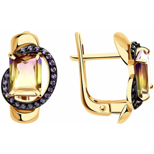 Золотые серьги Александра кл2596а-49ск-си с фианитом и аметрином