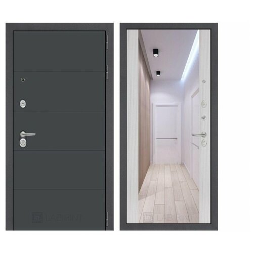 Дверь Входная Лабиринт ART Графит с Зеркалом Максимум - Сандал белый металлическая