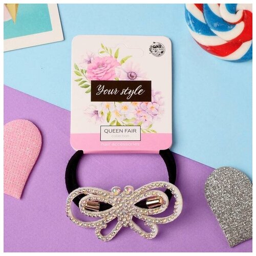 Резинка для волос черная, Авигея, бабочка, 6 шт.