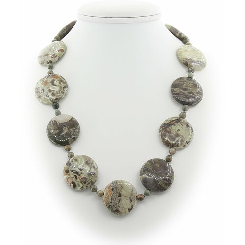 Бусы яшма пейзажная (Мадагаскар), плоские круглые 30мм, короткие 50см