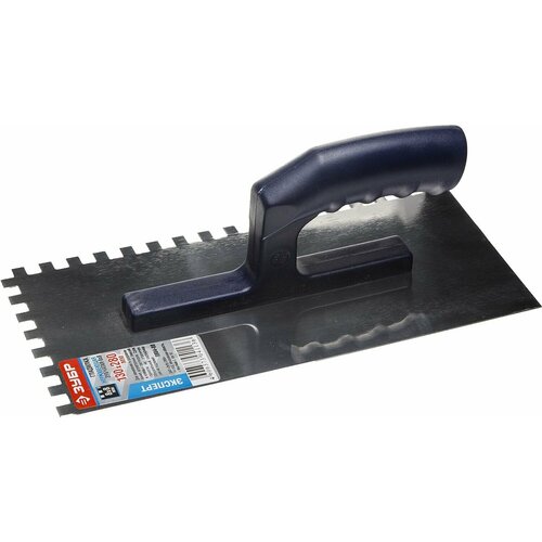 ЗУБР Профи 130х280 мм, 8х8 мм, гладилка штукатурная зубчатая нержавеющая с пластиковой ручкой. Серия