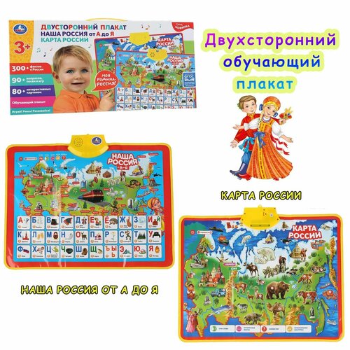 Плакат двусторонний развивающий интерактивный Наша Россия от А до Я. Говорящая азбука.