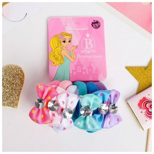 Резинка для волос ТероПром 3110257 "Бантик" (набор 6 шт) сердца страз, товар без выбора конкретного цвета