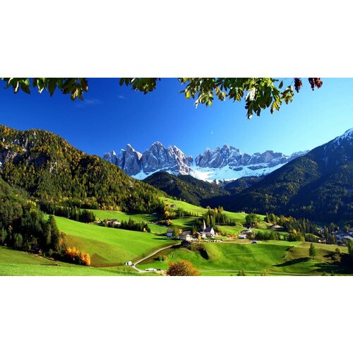 Постер на экокоже 60x80 LinxOne "Пейзаж луга Италия Funes" интерьер для дома / декор на стену / дизайн