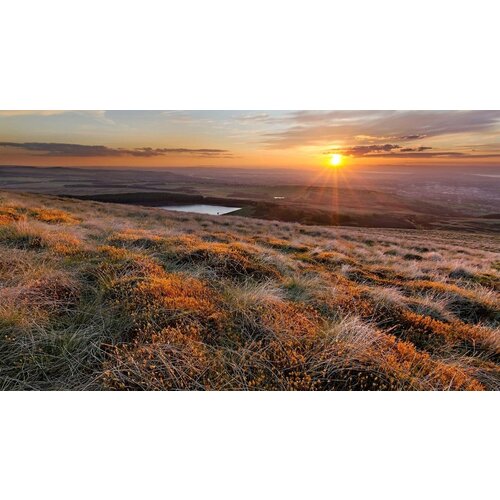 Постер на экокоже 60x60 LinxOne "Солнце закат луга озеро" интерьер для дома / декор на стену / дизайн