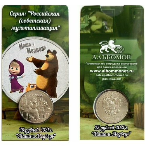 Памятная монета 25 рублей в блистере Маша и Медведь. Российская (Советская) мультипликация. Россия, 2021 г. в. Состояние UNC