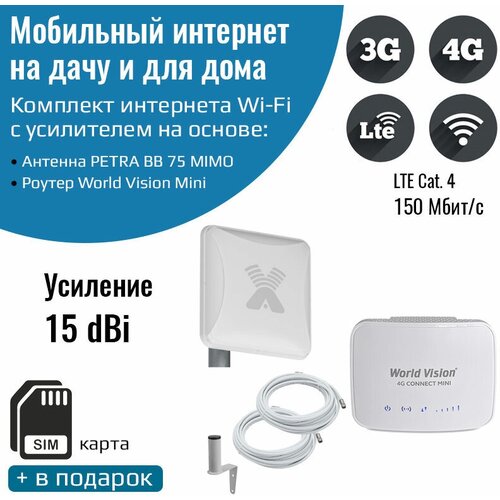 Комплект интернета WiFi для дачи и дома 3G/4G/LTE – Роутер Connect Mini с антенной Petra BB MIMO 15ДБ