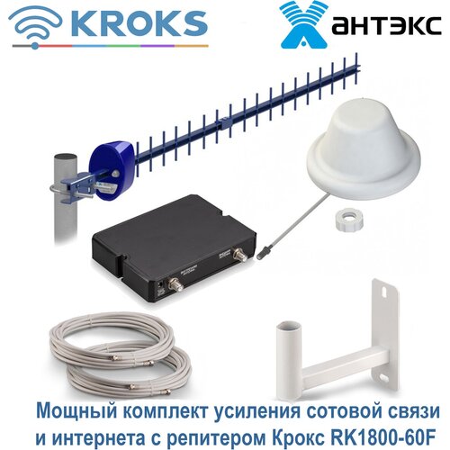 Комплект усиления сотовой связи и интернета с репитером Крокс RK1800-60F / Комплект с репитером 1800 МГц