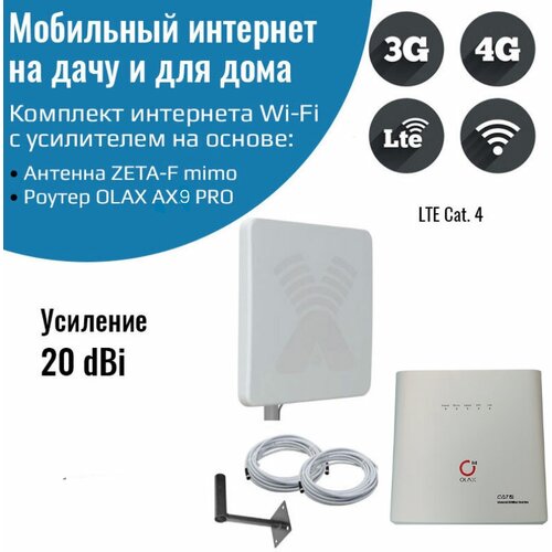 Комплект интернета WiFi для дачи и дома 3G/4G/LTE – Роутер OLAX AX9 PRO с антенной ZETA-F MIMO 20 ДБ
