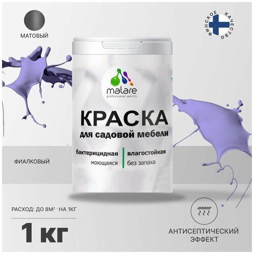 Краска Malare для садовой мебели, террасы и беседки, с антисептическим эффектом, быстросохнущая без запаха матовая, фиалковый, 1 кг.