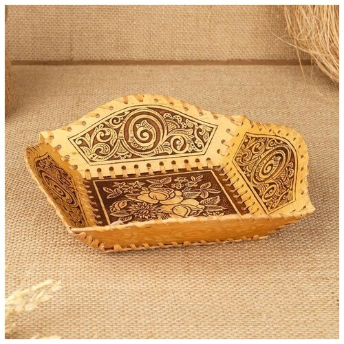 Тарелка квадратная "Алый букет", береста