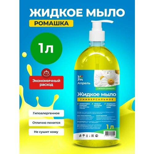 Гипоаллергенное косметическое Жидкое Мыло Ромашка 1 литров для рук и тела