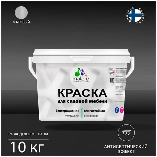 Краска Malare для садовой мебели, террасы и беседки, с антисептическим эффектом, быстросохнущая без запаха матовая, перо павлина, 10 кг.