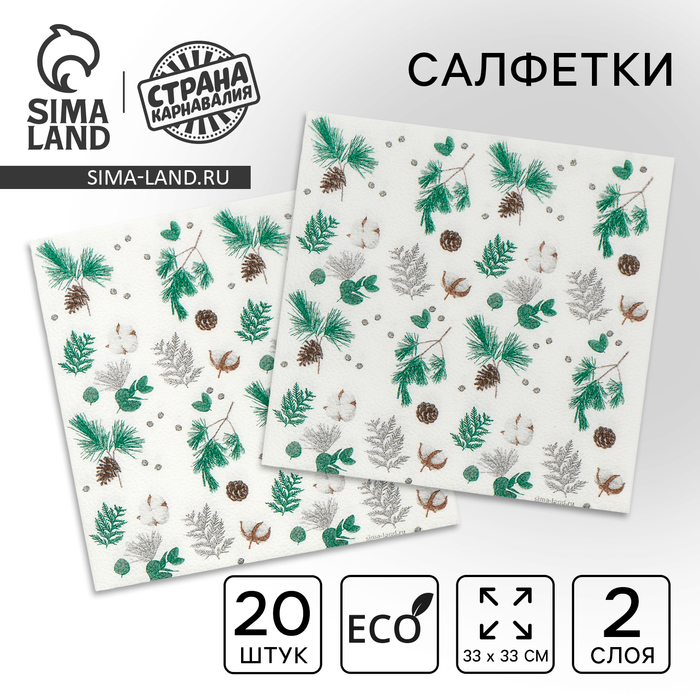 Салфетки бумажные «С Новым годом: шишки», однослойные, 24 х 24 см, 20 шт